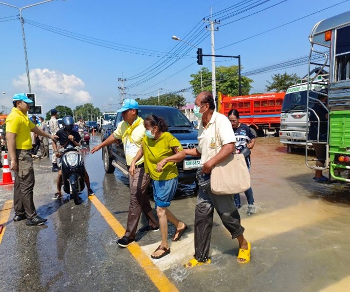 ข้าราชการตำรวจชุดจิตอาสา สภ.เมืองสุโขทัย ร่วมกับ เจ้าหน้าที่ฝ่ายทหาร และฝ่ายปกครอง ให้ความช่วยเหลือประชาชนและผู้ป่วยที่มาใช้บริการ รวมทั้งจัดการจราจร บริเวณถนนด้านหน้าโรงพยาบาลสุโขทัย ต.บ้านกล้วย อ.เมือง จ.สุโขทัย