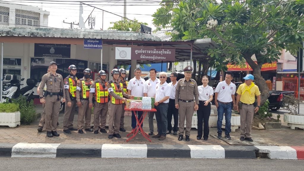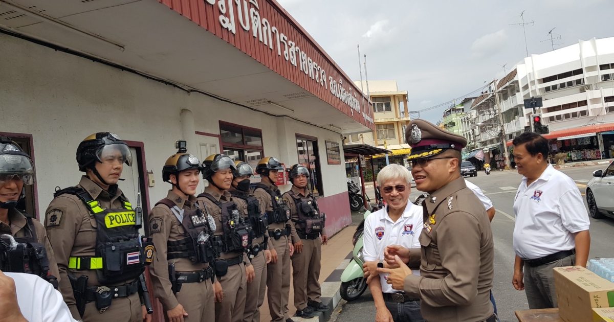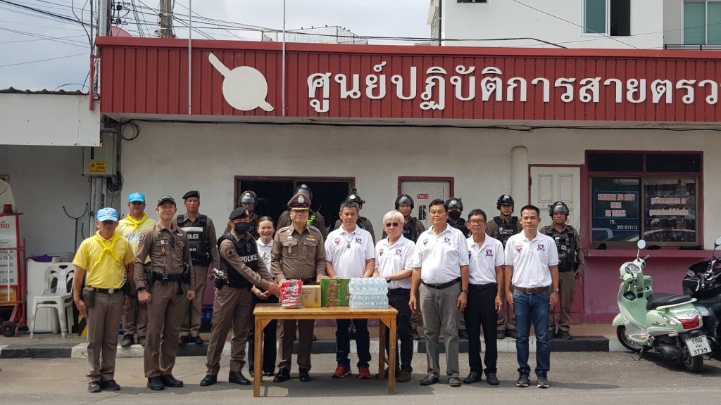 พร้อมมอบสิ่งของ เครื่องดื่ม และให้กำลังใจให้กับข้าราชการ ตำรวจผู้ปฏิบัติหน้าที่