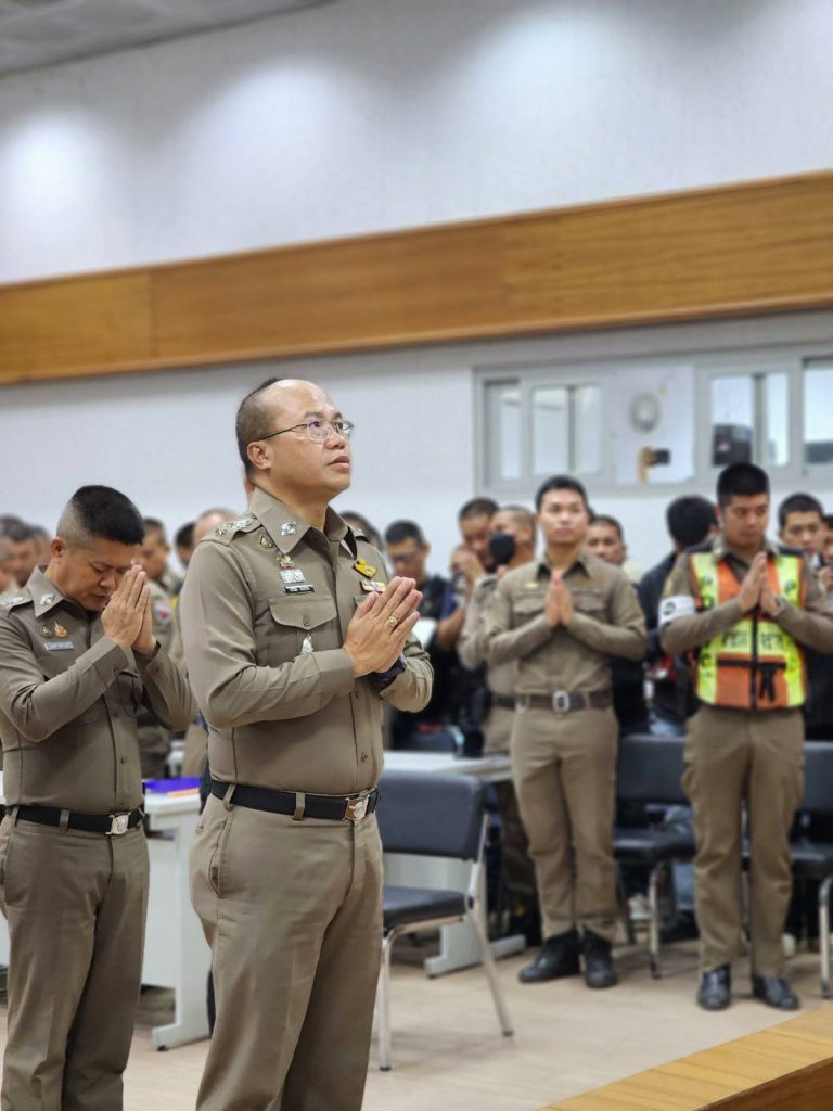 โดยได้นำข้าราชการตำรวจสวดมนต์ และกล่าวอุดมคติตำรวจและนำข้อสั่งการของผู้บังคับบัญชามาแจ้งในที่ประชุมทราบ และกำชับแนวทางในการปฏิบัติ หลังเสร็จสิ้นการประชุมได้เลี้ยงอาหารกลางวันแก่ราชการตำรวจในสังกัด