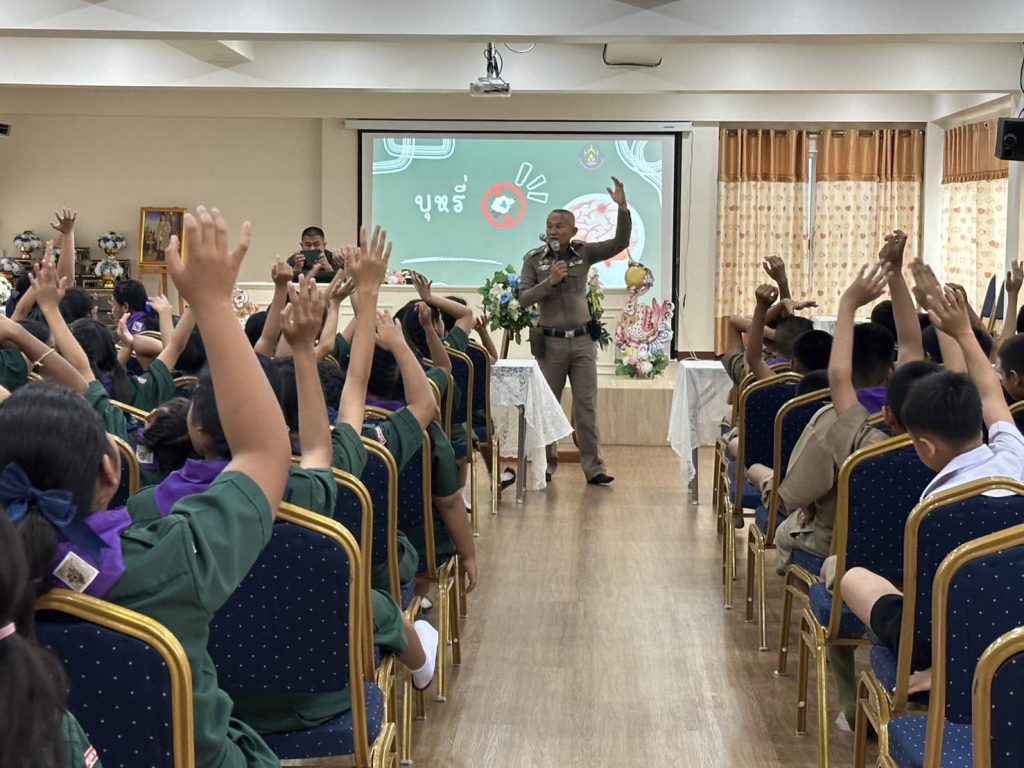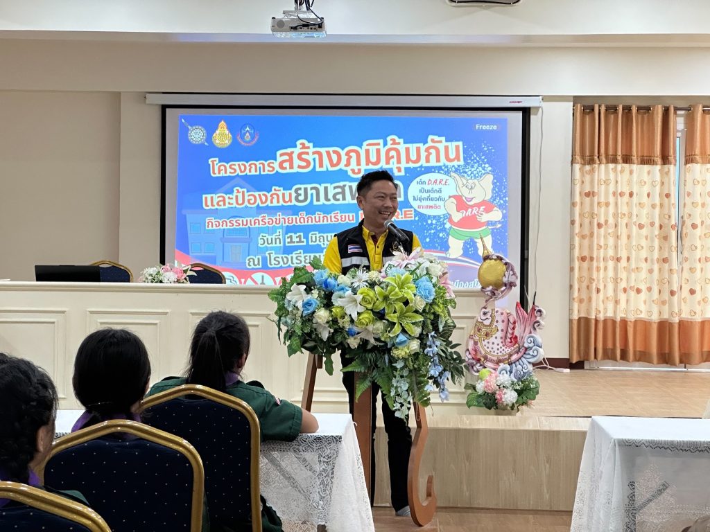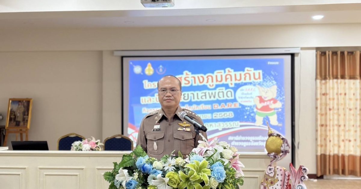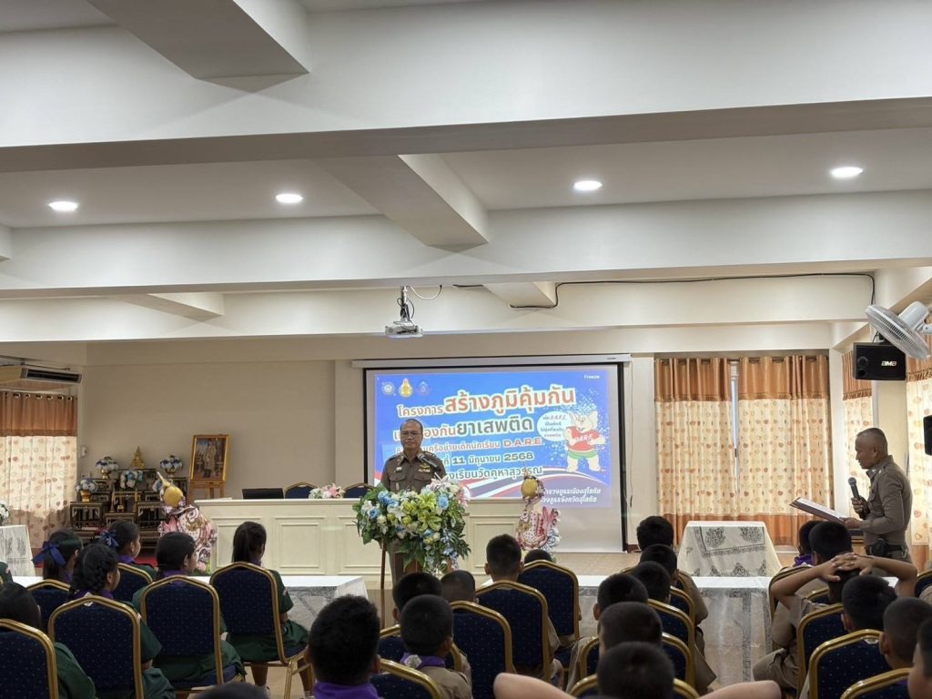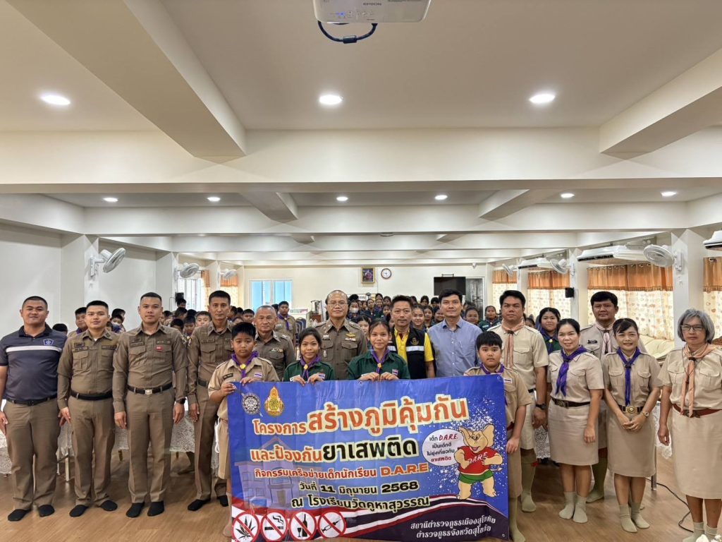 พ.ต.อ.นราธิป คนธรรม ผกก.สภ.เมืองสุโขทัย เป็นประธานพิธีเปิดโครงการสร้างภูมิคุ้มกันและป้องกันยาเสพติด จัดกิจกรรมเครือข่ายนักเรียน D.A.R.E 2568