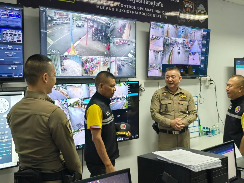 พ.ต.อ.ไพบูลย์ กาศอุดม ผกก.สภ.เมืองสุโขทัย พ.ต.ท.วศิน สุภา รอง ผกก.ป.สภ.เมืองสุโขทัย พ.ต.ต.ปรีชา ติ๊บประวงศ์ สวป.ชส.สภ.เมืองสุโขทัย พร้อมข้าราชการตำรวจ สภ.เมืองสุโขทัย ร่วมให้การต้อนรับ พล.ต.เฉลิม เนียมช่วย รอง ผอ.ศปป.3 กอ.รมน. และคณะ กอ.รมน.จว.สุโขทัย ได้มาศึกษาดูงานห้อง ศูนย์ปฏิบัติการสั่งการและควบคุมอาชญากรรม ของ สภ.เมืองสุโขทัย (CCOC)