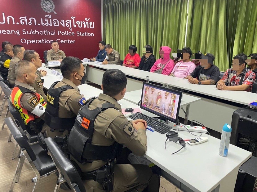 พ.ต.อ.ไพบูลย์ กาศอุดม ผกก.สภ.เมืองสุโขทัย,พ.ต.ท.ชนายุส จิโน รอง ผกก.สส.สภ.เมืองสุโขทัย, พ.ต.ท.วศิน สุภา รอง ผกก.ป.สภ.เมืองสุโขทัย,พ.ต.ท.ลักษณา แจ่มจันทร์ สว.จร.สภ.เมืองสุโขทัย,พ.ต.ท.ปรีชา ติ๊บประวงศ์ สวป.(ชส.) สภ.เมืองสุโขทัย ร่วมด้วย น.อ.วุฒิพงศ์ นิยมกุล หน.กลุ่มการข่าว กอ.รมน.จังหวัดสุโขทัย พร้อมด้วยเจ้าหน้าที่ กลุ่มการข่าว กอ.รมน.จังหวัดสุโขทัย ,ข้าราชการตำรวจชุดสืบสวน และชุดสายตรวจรถยนต์,รถจักรยานยนต์ สภ.เมืองสุโขทัย ได้ร่วมกันเชิญกลุ่มแก็งค์วัยรุ่นที่คาดว่าจะก่อเหตุในงานประเพณี “งานสักการะพระแม่ย่า จังหวัดสุโขทัย ประจำปี 2568”