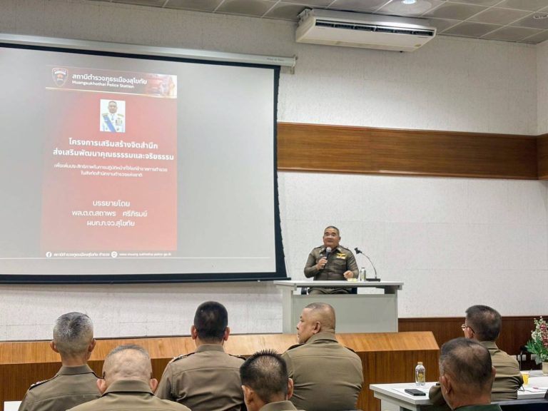 พ.ต.อ.ไพบูลย์ กาศอุดม ผกก.สภ.เมืองสุโขทัย พ.ต.ท.วศิน สุภา รอง ผกก.ป.สภ.เมืองสุโขทัย และเจ้าหน้าที่ที่เกี่ยวข้อง ร่วมเฝ้าฟังกิจกรรม Clinic ITA 2025 ของสถานีตำรวจ ภ.๖