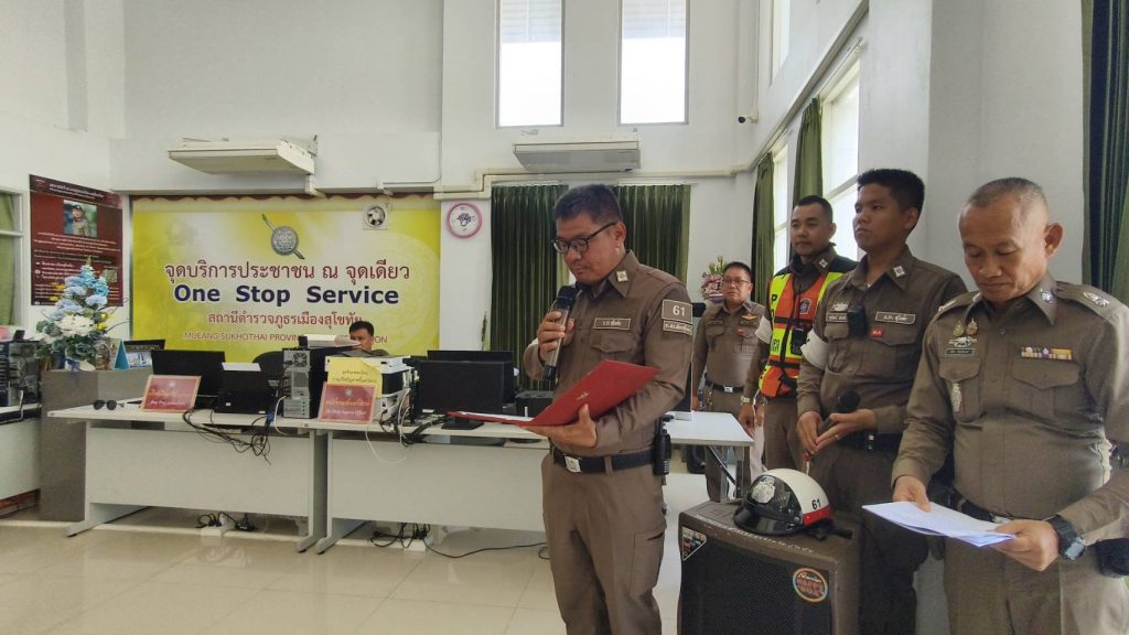 พ.ต.อ.นราธิป คนธรรม ผกก.สภ.เมืองสุโขทัย พร้อมด้วย พ.ต.ท.วศิน สุภารอง ผกก.ป.สภ.เมืองสุโขทัย