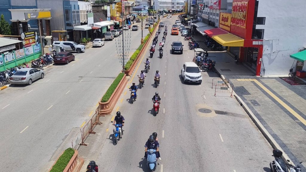 3.) ปล่อยขบวนรณรงค์รถจักรยานยนต์สวมหมวกนิรภัยตามเส้นทางโครงการตั้งแต่วงเวียนหอนาฬิกาถึงแยกบางแก้ว