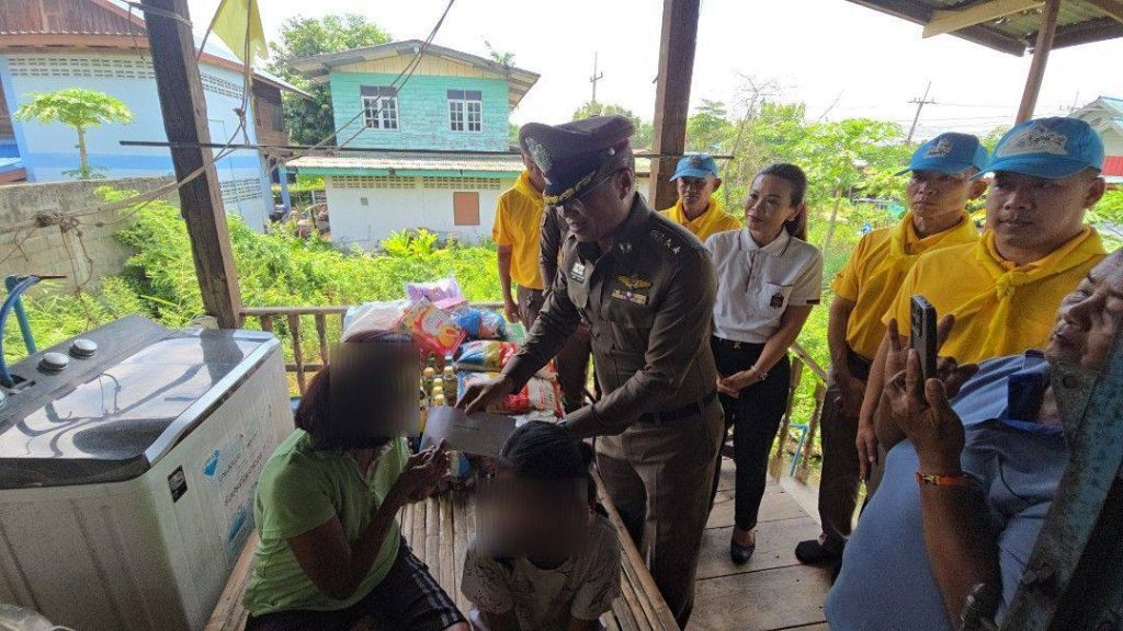 พ.ต.อ.นราธิป คนธรรม ผกก.สภ.เมืองสุโขทัย เป็นตัวแทนมอบ สิ่งของเครื่องใช้ให้ครอบครัวนางมาลัย กันภัย (ผู้ป่วย) อายุ 74 ปี อาศัยอยู่บ้านเลขที่ 73/1 ม.4 ต.ยางซ้าย อ.เมือง จ.สุโขทัย